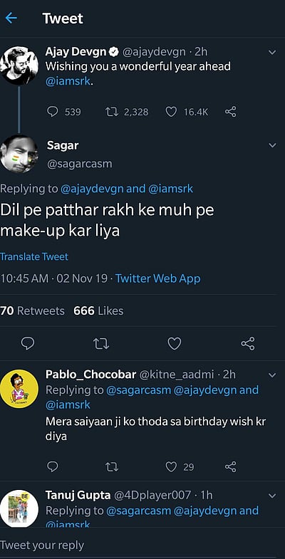 Original Resolution: 1040x2043 Did Kajol Hack Your Account Twitter Brutally Trolls Ajay Devgn After He Wishes Shah Rukh Khan 'kaabil' director sanjay gupta took the opportunity to take a dig at shah rukh khan over the clash, hinting at how karma hit shah rukh and tweeting 'kartam bhuktam on independence day.' 647x404 - Srk twitter latest breaking news, pictures, photos and video news.